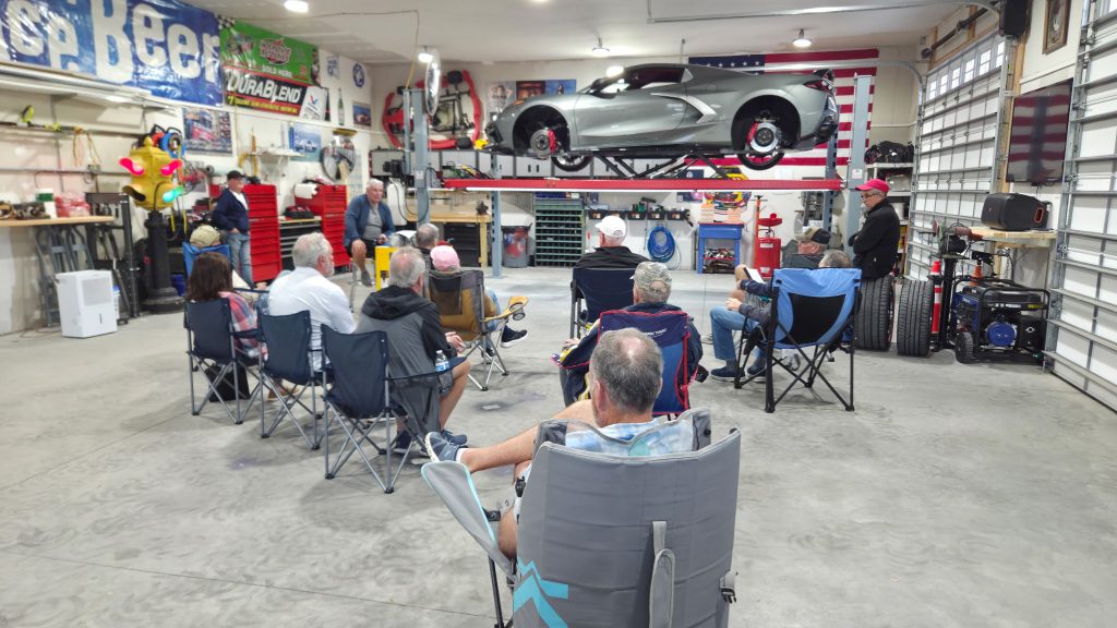 Friday and Saturday, March 13th and 14th saw about 25-30 club members show up each day to discuss routine maintenance on their Corvettes, from air filter changes, to oil changes, changing transmission fluids, using the correct fluids, and even some aftermarket installations on items like exhausts and side skirts and splitters. Everyone also got to see first hand every step involved with a routine engine oil change along with filter change on the C8’s. This was extremely valuable information as there are more and more C8 owners in the club every week it seems. Special thanks to Scott and Judy Tamburri for hosting these events at their home garage, and to Phil DelCostello and Bob Lagoy for donating their vehicles for the work, and all their knowledge and hands on interaction with all the club members.