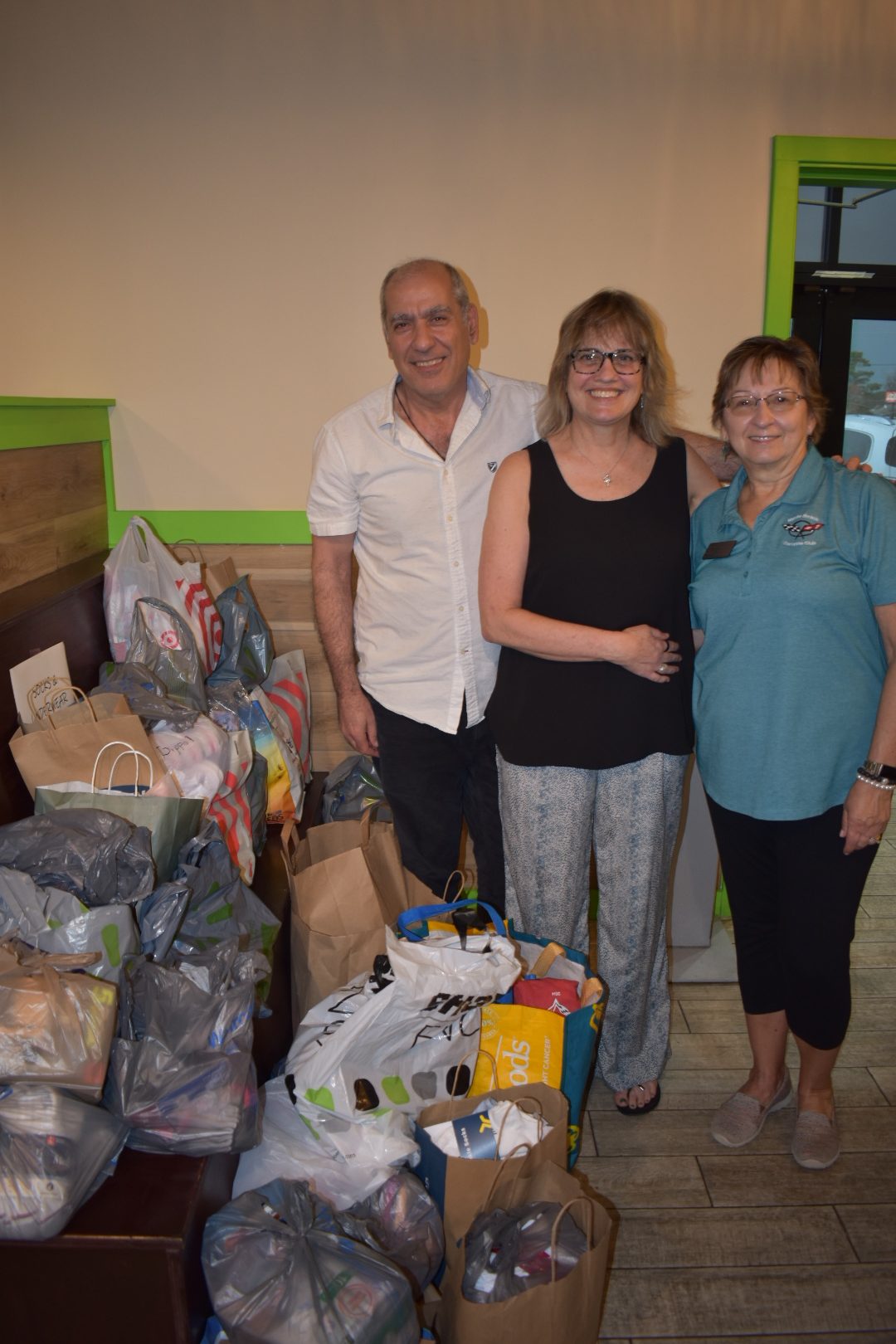 Thank you everyone! The collection of Underwear and Socks for our clothing drive with K-12 Outfitters was very successful. The photo shows the mounds of bags with the goodies. Theresa Chambers, founder and volunteer Ibrahim Naim were on hand to accept all the items.